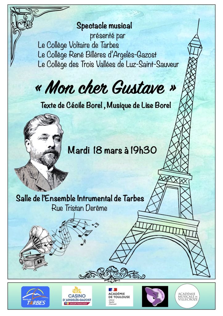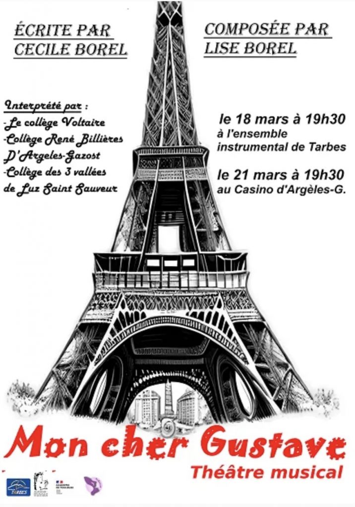 Mon cher Gustave met en scène la rencontre entre l’ingénieur français et le savant américain Thomas Edison (1847-1931), auxquels se joindront, au fil de leur discussion, la fille de Gustave Eiffel, Claire, le président Sadi Carnot ou encore l’actrice Sarah Bernhardt. Et bien sûr, la Statue de la Liberté et la tour parisienne seront de la partie !