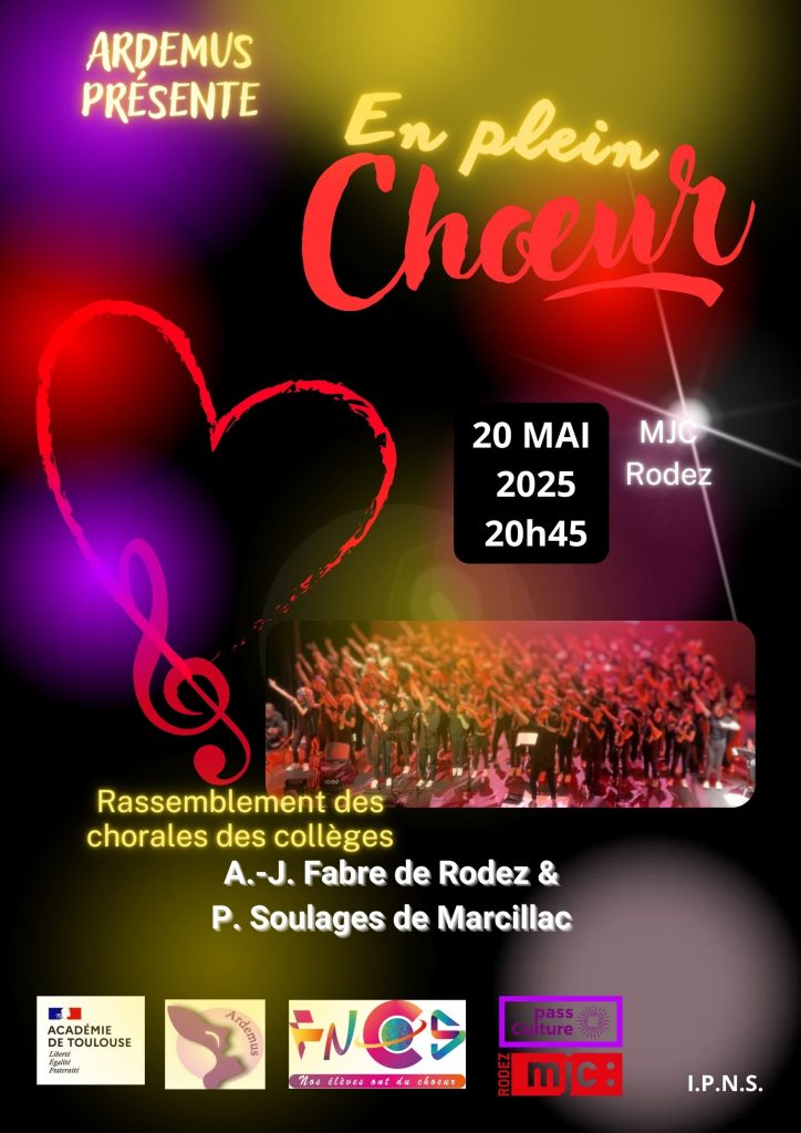 Avec des papillons dans le ventre et le sourire aux lèvres, les chorales des collèges Fabre de Rodez et Pierre Soulages de Marcillac vous déclarent leur flamme en chansons et donnent leur sérénade le 20 mai 2025 à 20h45 à la MJC de Rodez.