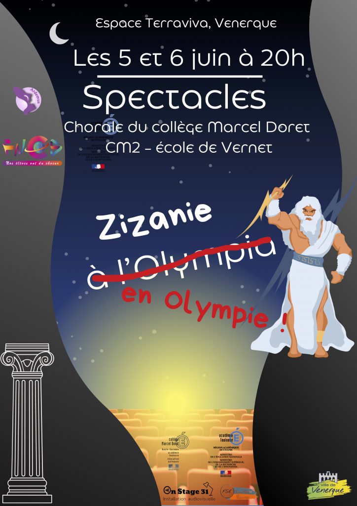 Zizanie en Olympie revisite quelques succès connus et moins connus mettant en scène dieux, monstres et héros de la mythologie, tout en s’amusant avec les époques.