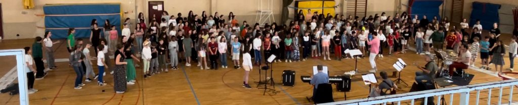 La chorale du collège A.-J. Fabre de Rodez a concocté la playlist idéale pour mettre l’ambiance en faisant chanter et danser la relève des CM de 5 écoles aveyronnaises de secteur.
