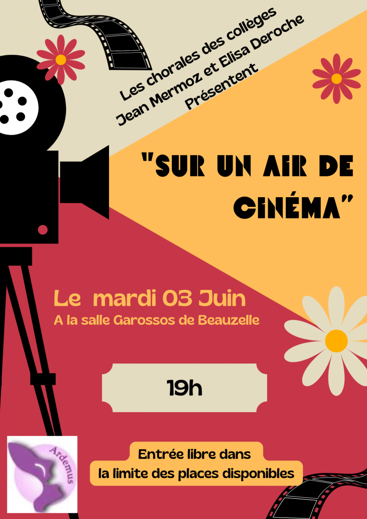 Les deux collèges se sont inscrits dans le parcours « Choeur sur son 31 » et vous proposent, avec l’aide de l’Ardemus et de la DAAC , un spectacle intitulé « Sur un air de cinéma ». Rendez-vous à la salle Garossos de Beauzelle à 19h le 03 juin pour une soirée musicale riche en émotions.