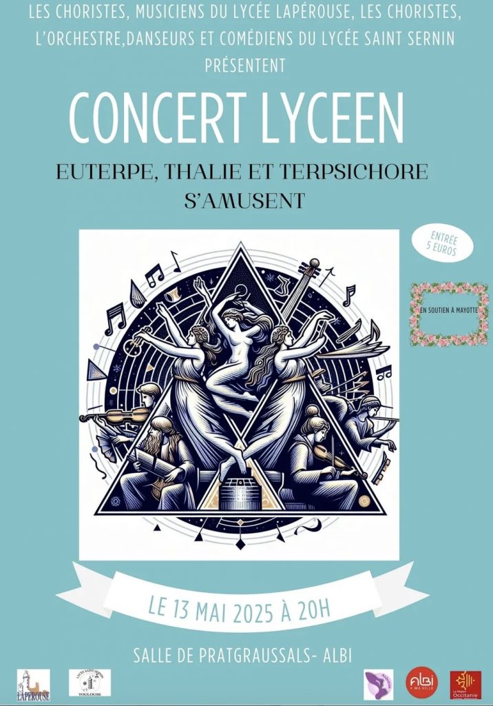 « Euterpe, Thalie et Terpsichore s’amusent » rassemble les élèves chanteurs, musiciens, danseurs et comédiens des lycées Lapérouse d’Albi et Saint-Sernin de Toulouse.