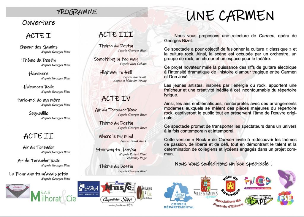 Une femme, une rencontre, un amour, des collégiens et des lycéens de l’Ariège qui revisitent ce livret de Prosper Mérimée mais il se peut que l’orchestre symphonique flirte avec quelques guitares électriques …